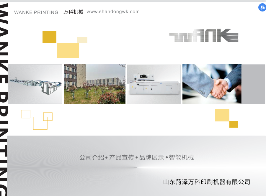 山東菏澤萬科印刷包裝機器有限公司成立于2000年,專業開發新型裝訂設備,擁有多位國內實力專業工程師,經驗的服務團隊,技術先進。 萬科印機堅持“不斷創新”的戰略方針服務客戶。 書封勒口聯動線,對已膠訂好的勒口的書本可一次加工成成品,工序是裁切前口、封面壓痕、封面勒口、書本兩側面裁切。
